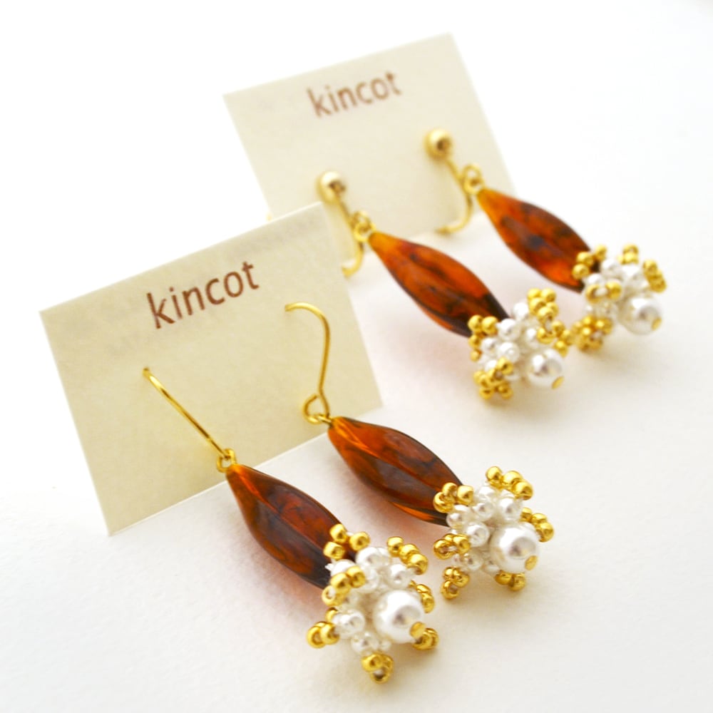 まるで木の実が花をつけたようなデザインのピアス・イヤリングです。