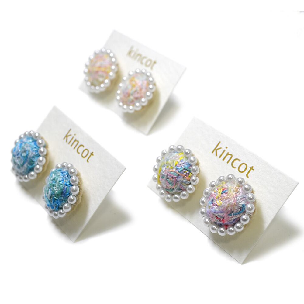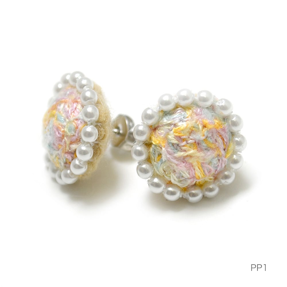 丁寧に縫い付けられた小さなパールの縁取りが、
