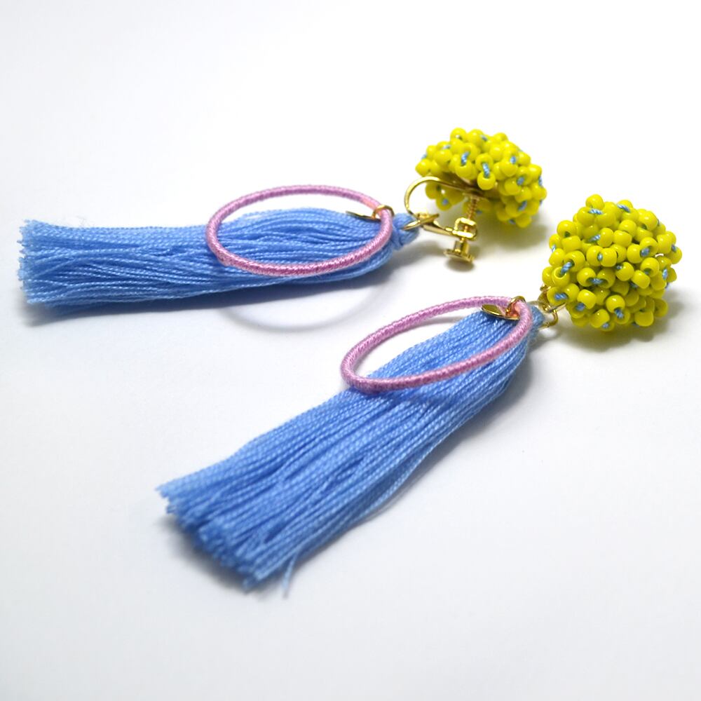 ボリュームビーズのポンポンと、長いフリンジと、